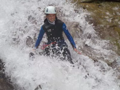 Peut se combiner avec la partie haute, plus technique (enchaînements de rappel jusqu'à 65 mètres de hauteur), pour faire la descente intégrale :un must, dont la renommée dépasse nos frontières ! Petit conseil sécurité : ne laissez aucun objet de valeur dans les voitures qui seront garées sur le parking du canyon