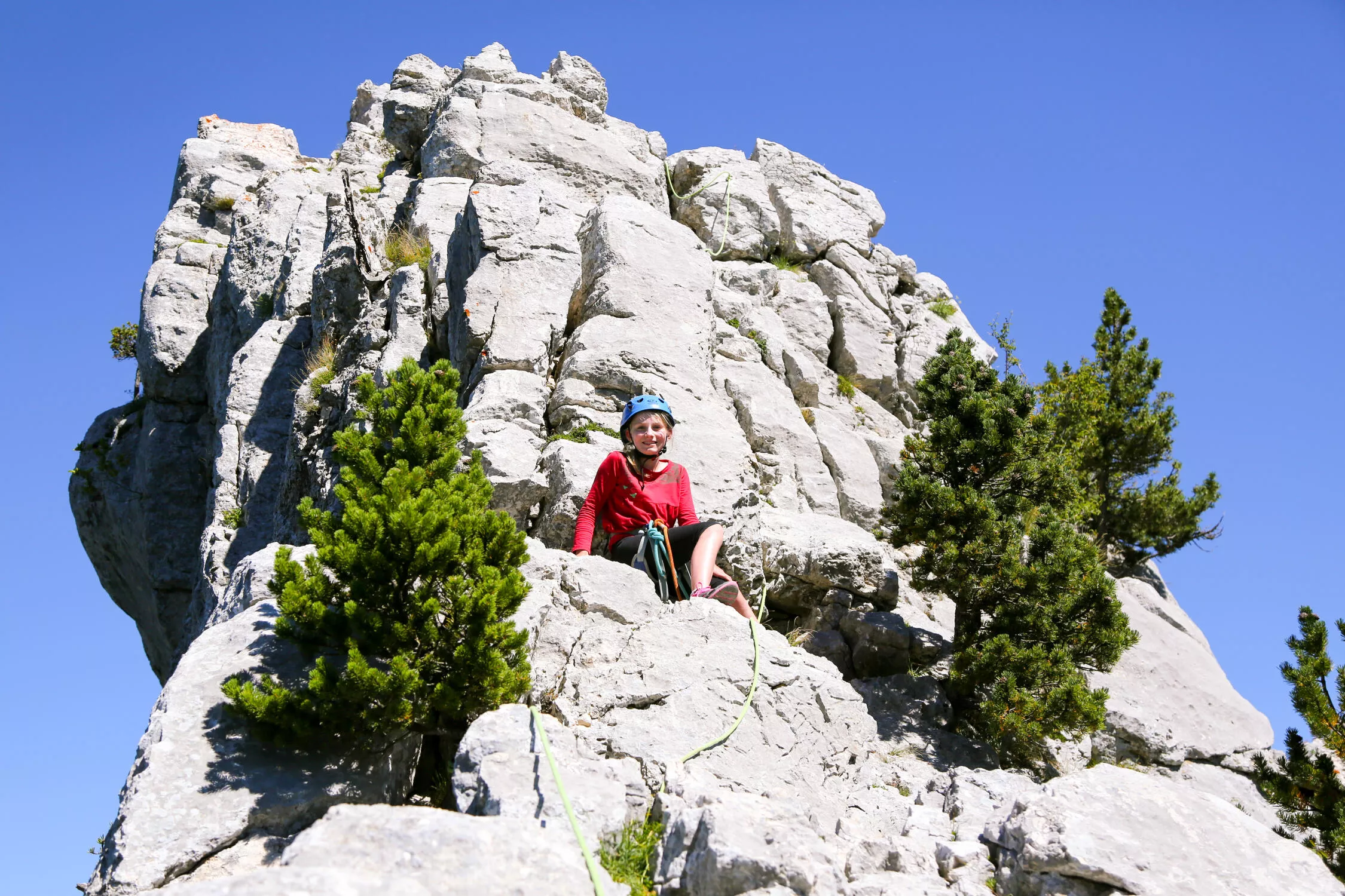 It consists of three rocky “teeth,” up to 150 metres high, linked by paths and breaches that provide diverse climbing opportunities, always with a thrilling sense of exposure. Accessible to beginners via a “spicy” traverse and to intermediate climbers with longer routes, the massif charms visitors with its dizzying aspect and breathtaking viewpoints—from the Alps and the Dévoluy all the way to Mont Blanc!